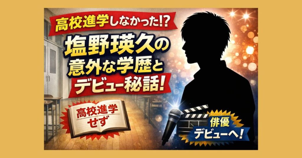 俳優・塩野瑛久さんは、戦隊シリーズや近年の話題作への出演で注目を集めています。 一方で「塩野瑛久 学歴」というキーワードで検索すると、少し意外な経歴があることが分かります。 この記事では、塩野瑛久さんの中学卒業後の進路や、高校・大学に進学し... -