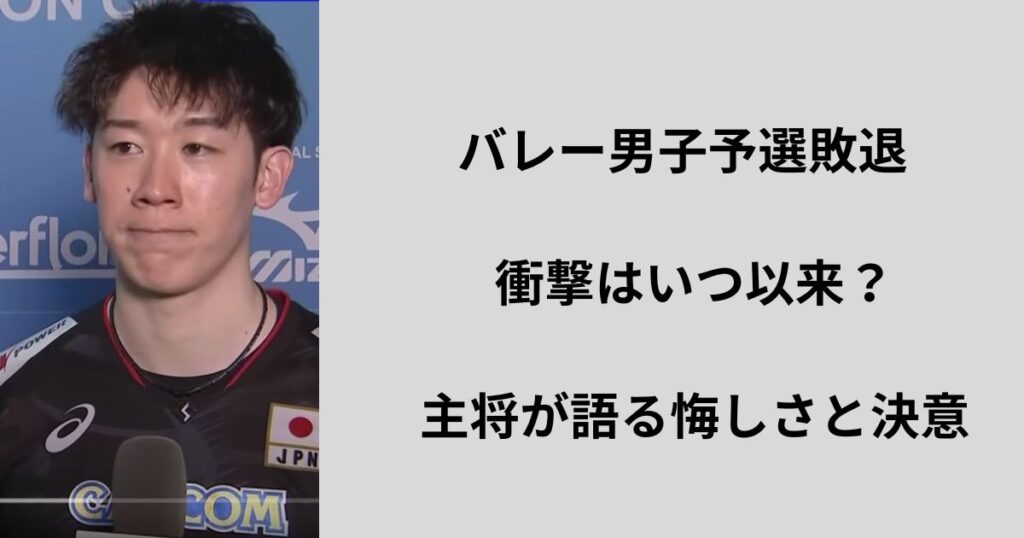 バレーボール男子日本代表が、2025年世界選手権の予選で敗退するという衝撃的な結果となりました。 今回の予選敗退は、実に7年ぶりの出来事です。 日本代表の主将である石川祐希選手が語った悔しさと決意の言葉に、多くのファンが注目しています。 この記... -