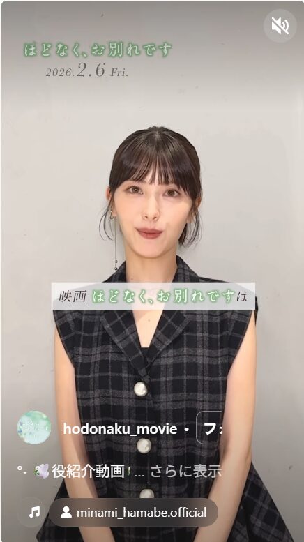 2025年12月21日、映画『ほどなく、お別れです』公式Instagramに浜辺美波さんが登場し、役柄コメント動画が公開されました。※1