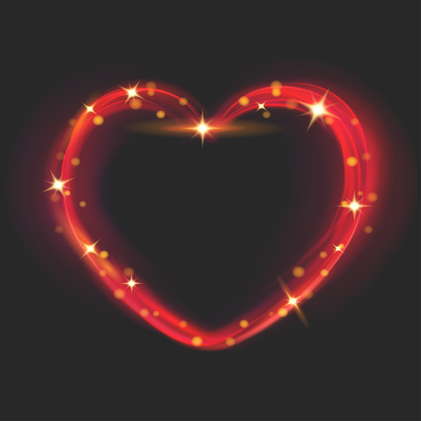 Abstract light effects in the shape of a heart in red colors